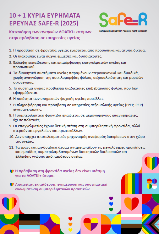 ΑΝΟΙΧΤΗ ΠΡΟΣΚΛΗΣΗ ΠΡΟΣ ΕΠΑΓΓΕΛΜΑΤΙΕΣ ΥΓΕΙΑΣ Το ευρωπαϊκό συγχρηματοδοτούμενο έργο Safe-R – Safeguarding LGBTQI+ People’s Right to Health προσκαλεί επαγγελματίες υγείας όλων των ειδικοτήτων του δημόσιου και ιδιωτικού τομέα, νοσηλευτικό προσωπικό, μαιευτικό, παραϊατρικό προσωπικό και ψυχολόγους να συμμετάσχουν σε δωρεάν μονοήμερες εκπαιδεύσεις με αντικείμενο τη συμπεριληπτική και ισότιμη φροντίδα υγείας ΛΟΑΤΚΙ+ ατόμων. Στόχος των εκπαιδεύσεων…Continue reading→
